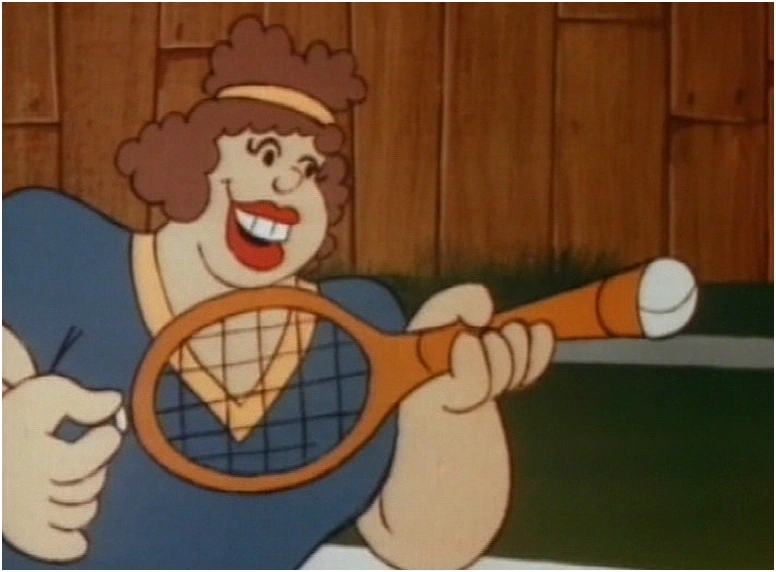 She and her boyfriend face the doubles team of Olive and Popeye in a tennis match, where they employ all sorts of tricks to gain (temporary) advantage.