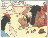 Like many animal antagonists, when Popeye defeats them, they tend to transform into byproducts associated with their species; in this case, they turn into meat.