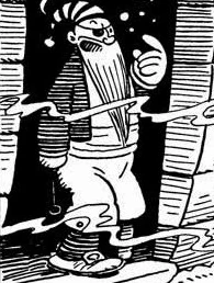 Davy Jones is a character appearing in Popeye comics authored by Tom Sims and Bela Zaboly, inspired by the legend of Davy Jones' Locker. He is depicted as a sea spirit who inhabits the bottom of the ocean as well as his Locker, which is located in a sunken ship. Although he has opposed Popeye in the past, both masters of the sea have grown mostly friendly towards each other. The being appears as an old pirate with a white beard, eyepatch, peg leg, and hook.