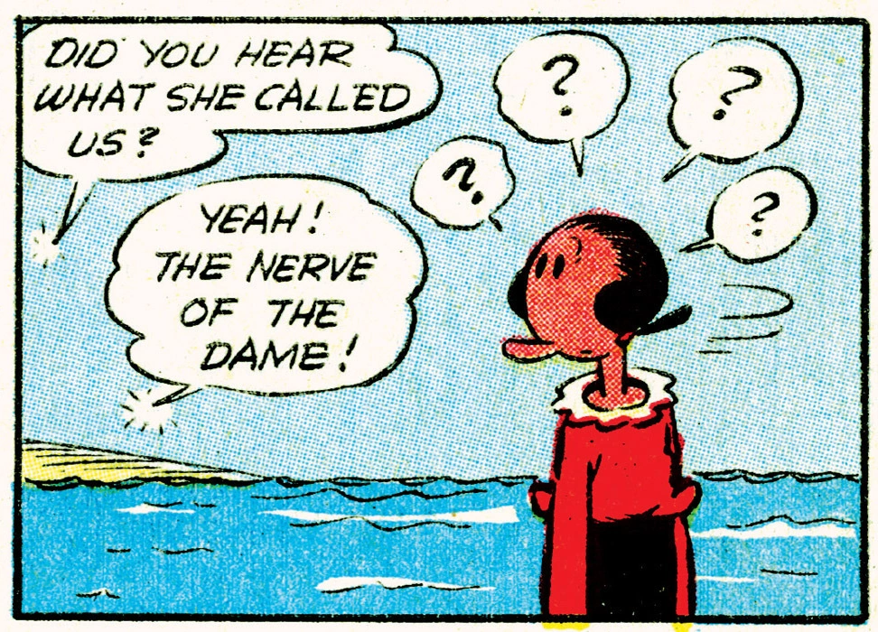 The Nothings were created by Bud Sagendorf in 1955, first appearing in the second story of the 34th issue of the original Popeye/Thimble Theatre comic book, titled "Nothing!".