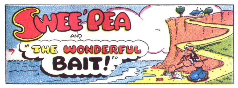 Swee'Pea and Pappy make a bet to see who can catch the most fish. Swee'Pea wins with a special bait that attracts countless fish.